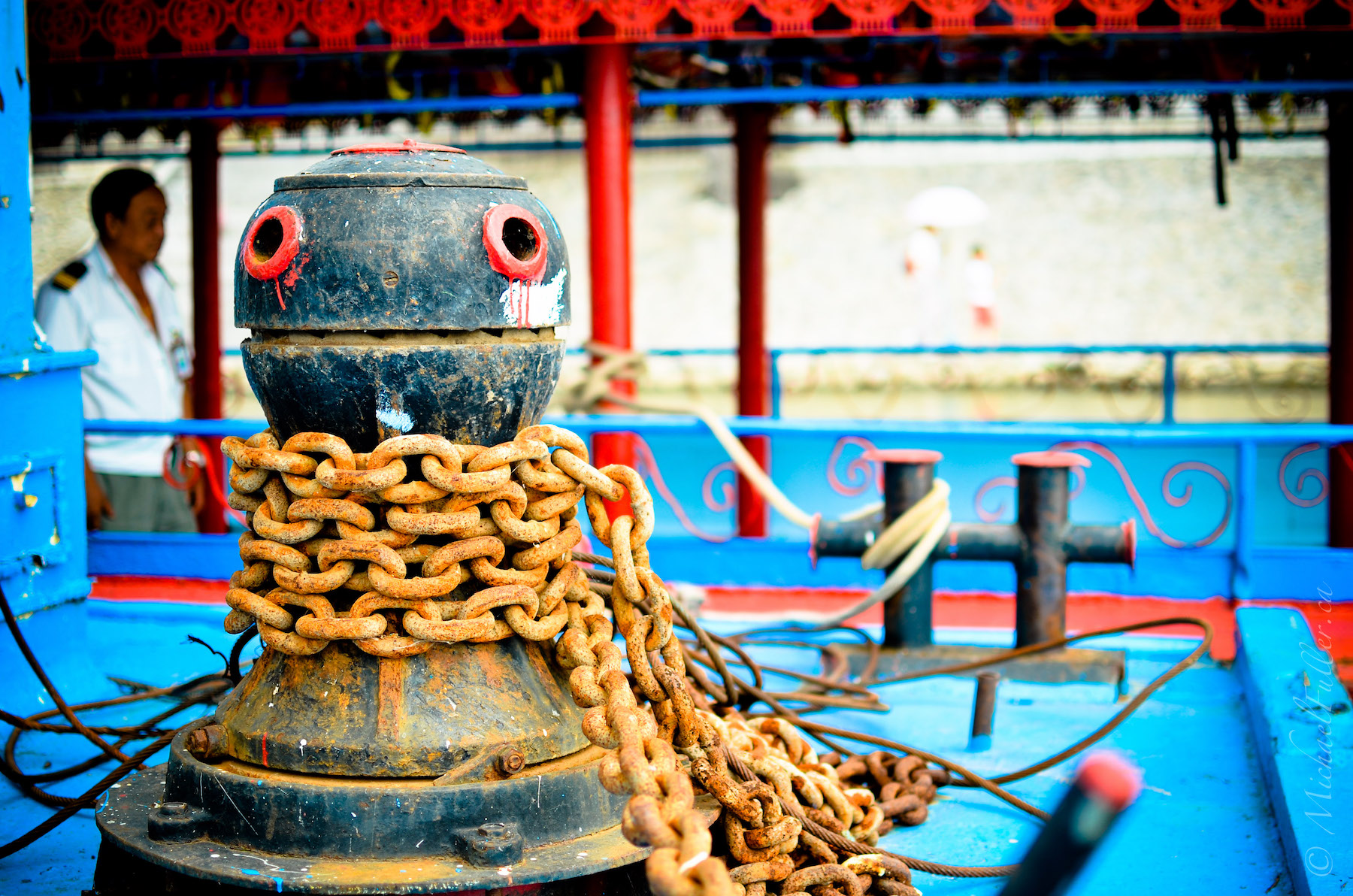 Outside on the charming pedestrian-only cobblestone street full of shops, food stalls, and people, we occasionally noticed a group of Police passing by, as one might expect walking in such a public place. Except that instead of walking beside each other (like normal human beings), they walked single file, in lock step, staring directly forward like robots. Weeeeird.