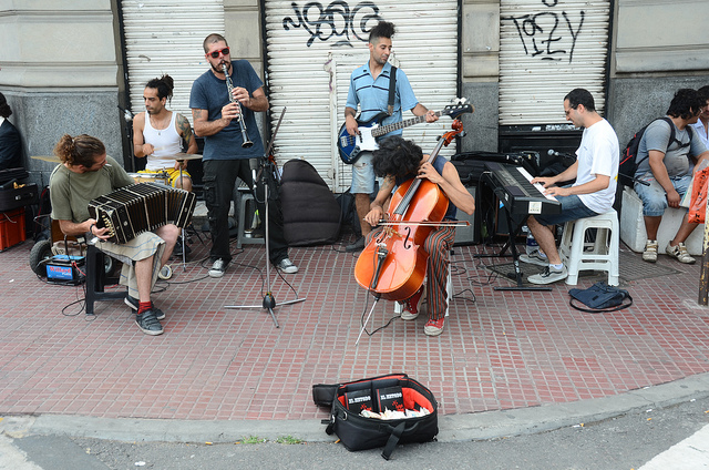 The scene improved immediately, greeted by friendly people who fed me dinner and delicious local wine! Many of my new friends had spent months in BA. It was all testimony to the lure of the city and the lifestyle of its residents (called ‘porteños‘; or port people). The city is adorned with colourful and intricate street artwork; lively markets with beautiful crafts and antiques; gorgeous old European architecture from a time when Argentina was awash in wealth; and amazing live music, everywhere—restaurants, Subte tunnels, and even amongst friends hanging out in parks.
